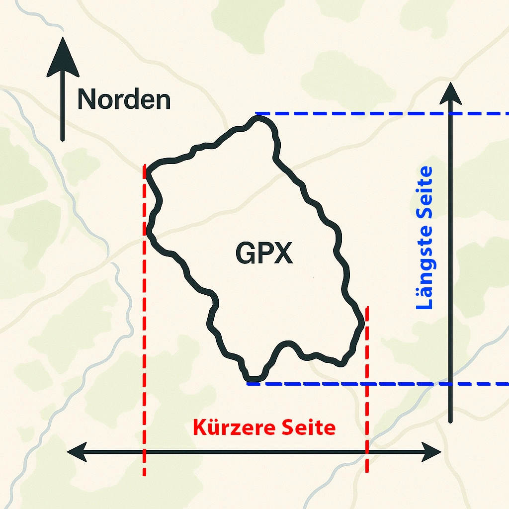 Wenn deine Tour z. B. von Ost nach West verläuft, ist die Breite deines Modells die längste Seite.